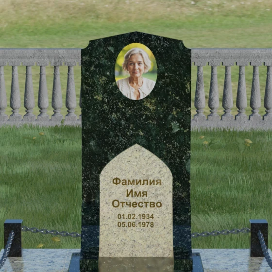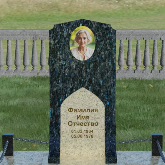 Каждый человек уникален, и мы предоставляем возможность отразить это в материале. Данная модель доступна в 8 цветовых решениях, что позволяет подобрать камень, максимально соответствующий характеру ушедшего. Вы можете выбрать классический гранит Габбро-диабаз для создания атмосферы глубокого покоя, величественный красный Лезниковский гранит, строгий Дымовский или экзотический Блю Перл с его внутренним сиянием. Также доступны варианты в граните Амфиболит, Балтик Грин, белоснежном Мансуровском граните и благородном мраморе Тассо. Использование различных оттенков камня позволяет сделать акцент на деталях: например, замена светлой арки на контрастный красный или зеленый гранит полностью преобразит восприятие мемориала.