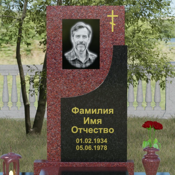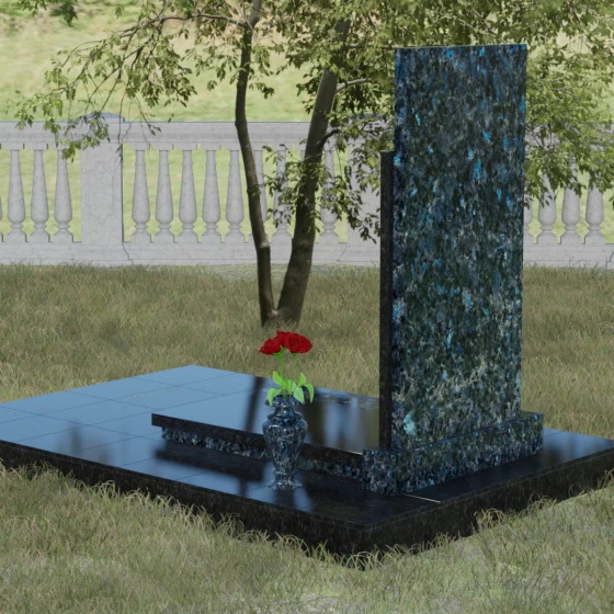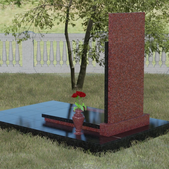 Модель Артикул 024 представляет собой законченное архитектурное решение. Стела установлена на массивный гранитный цоколь, который служит надежным фундаментом и придает всей конструкции необходимую устойчивость. Важной особенностью данного проекта является полное мощение участка: вместо открытого грунта используется сплошная надгробная плита. Это не только создает эстетически безупречный, аккуратный вид, но и значительно упрощает уход за местом захоронения, избавляя от необходимости борьбы с сорняками. В едином стиле с основным монументом выполнены дополнительные элементы декора: изящная каменная ваза, установленная на плите, позволяет приносить живые цветы, сохраняя гармонию композиции. Каменный бордюр по периметру участка четко очерчивает границы мемориала, превращая его в уединенное место для тихой молитвы и воспоминаний.
