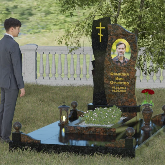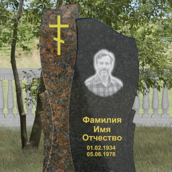 Кому подойдет: Данная модель является универсальным и при этом глубоко индивидуальным решением. Благодаря возможности комбинирования камней, она идеально подходит как для оформления мужского захоронения (в строгих темных тонах с четкими линиями), так и для женского (при выборе более светлых оттенков камня и акценте на плавную волну стелы). Наличие православного креста делает её приоритетным выбором для верующих людей, подчеркивая их принадлежность к христианской традиции и надежду на вечную жизнь. Этот мемориальный комплекс станет достойным воплощением вашей любви и бесконечного уважения к ушедшему родителю, супругу или близкому другу, сохраняя их светлый образ для будущих поколений.