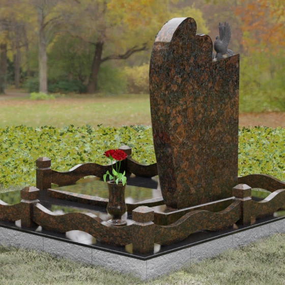 Завершает архитектурную группу изящная каменная ваза и ритуальный фонарь (лампада), установленные на надгробной плите. Эти детали не только функциональны, но и служат важными визуальными акцентами, уравновешивающими массу основной стелы. Выбирая этот комплекс, вы создаете незыблемый символ памяти, который будет стоять в первозданном виде сотни лет, олицетворяя собой глубокое уважение и вечную привязанность к близкому человеку.