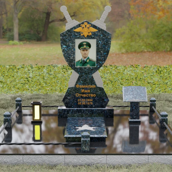 Кому подойдет: Данная мемориальная композиция разработана специально для тех, кто посвятил свою жизнь служению Отечеству. Она станет идеальным выбором для оформления места захоронения профессионального военного, сотрудника правоохранительных органов, ветерана или человека, чья жизнь была примером мужества и дисциплины. Строгие линии, военная символика и монументальность формы без лишних слов расскажут о силе характера, доблести и чести того, кто нашел здесь свой последний приют.