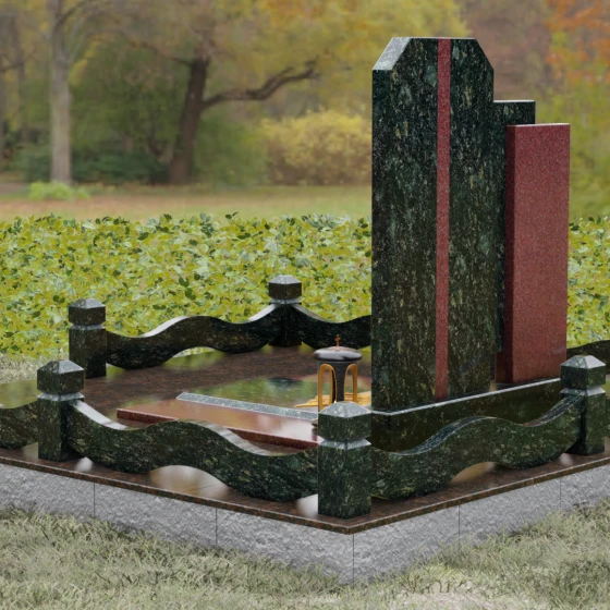 При изготовлении данного комплекса используется только отборное природное сырье, обладающее исключительными физико-механическими свойствами. Гранит заслуженно считается «вечным» материалом: его колоссальная плотность и минимальное водопоглощение гарантируют защиту от разрушения даже в условиях суровых зим с частыми перепадами температур. Камень не тускнеет, не выцветает под прямыми солнечными лучами и сохраняет безупречный блеск десятилетиями. Данная модель доступна в 8 цветовых решениях, что позволяет подобрать камень под характер и энергетику человека: