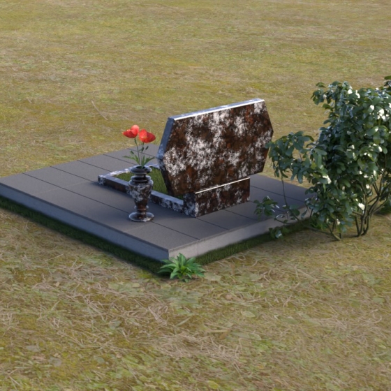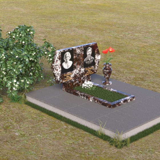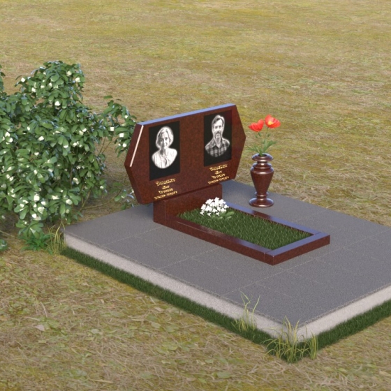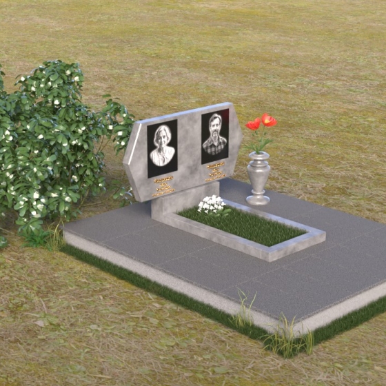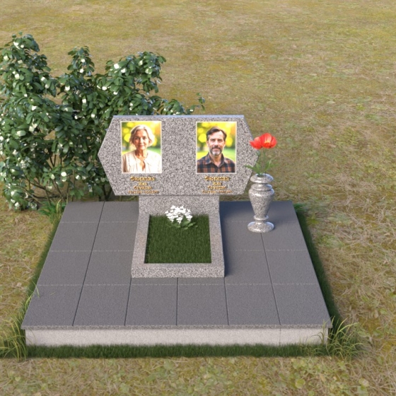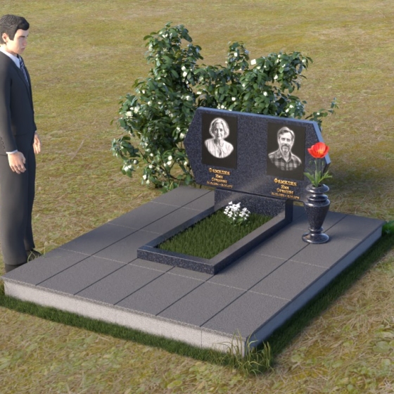 Величественная стела памятника ПГ004 представляет собой элегантное сочетание строгих линий и мягких, сглаженных углов. Верхняя часть имеет форму, близкую к прямоугольнику, но с деликатно скошенными верхними углами, что придает ей визуальную легкость и утонченность. Боковые грани плавно переходят в лицевую поверхность, создавая ощущение обтекаемости и завершенности. Фаска по периметру лицевой стороны подчеркивает четкость контура и добавляет дополнительный объем. Нижняя часть стелы, служащая основанием для размещения информации и портретов, выполнена в форме прямоугольной призмы, гармонично сочетающейся с основной частью памятника. Подставка под вазу выполнена в классическом стиле и имеет плавные обтекаемые формы.