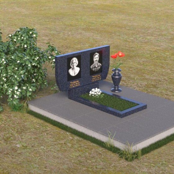 Памятник ПГ015 представляет собой композицию, состоящую из массивной стелы, горизонтальной плиты и тумбы. Стела, выполненная в форме прямоугольника со слегка скошенными верхними углами, создает ощущение надежности и основательности. Зеркальная полировка камня придает ей благородный блеск, отражая свет и создавая игру теней, подчеркивающую глубину и объем. На стеле располагаются два портрета, выполненные с высокой точностью, а также памятные надписи, выполненные золотым шрифтом. Справа от портретов, словно символ вечной памяти, размещена небольшая ваза, в которой можно разместить живые или искусственные цветы.