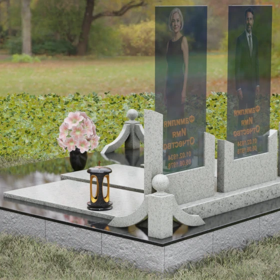 - Массивный гранитный цоколь: Мощное многоуровневое основание, обеспечивающее надежную установку и защищающее конструкцию от проседания почвы.