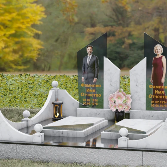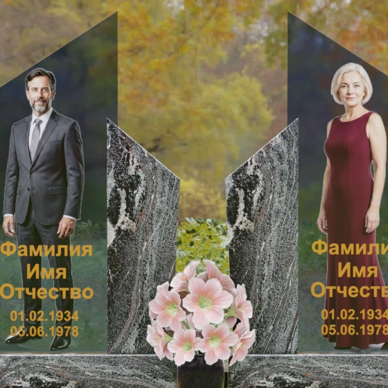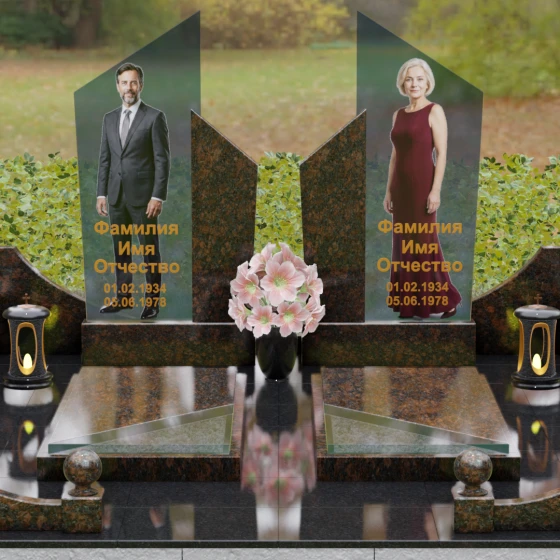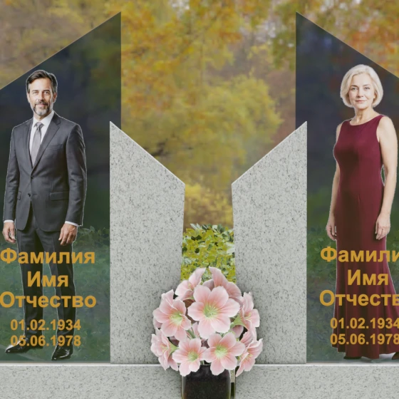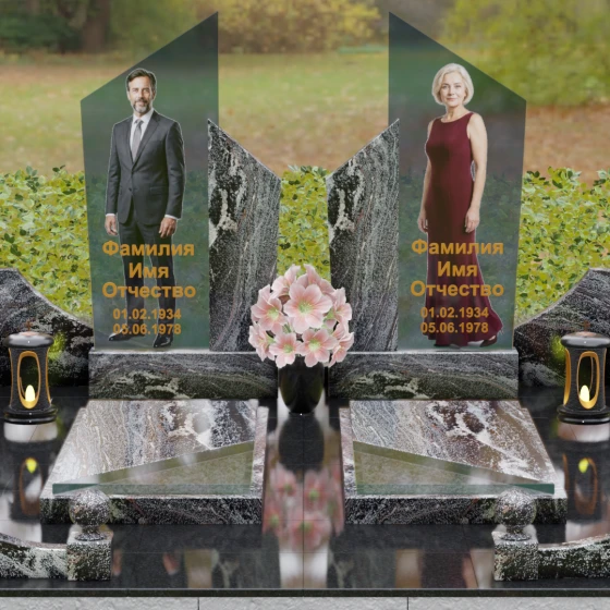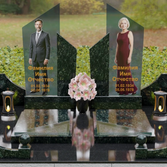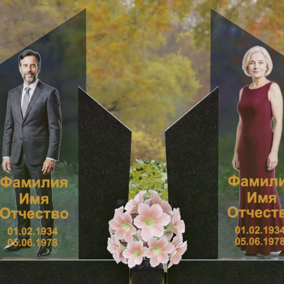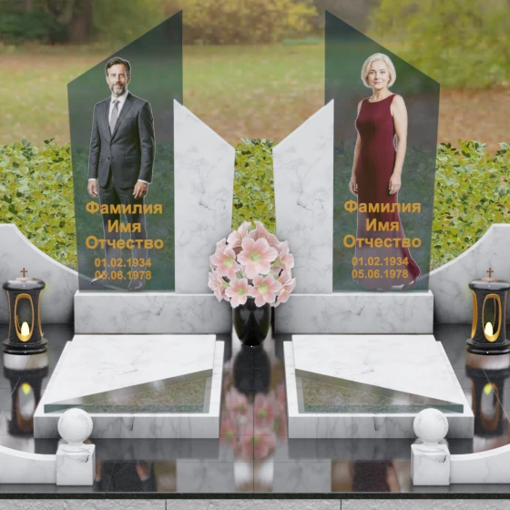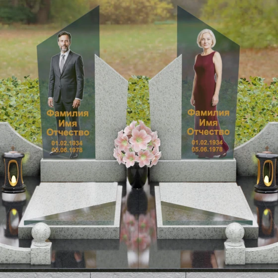Для этой формы идеально подходят ростовые портреты или крупные изображения на стекле, которые, благодаря большой площади вертикальных элементов, выглядят масштабно и реалистично. Золотая гравировка текста на темном фоне или глубокая вырубка букв на светлом камне станут достойным финальным штрихом. Мы понимаем горечь вашей утраты и стремимся воплотить в камне ту безмолвную любовь и уважение, которые навсегда останутся в ваших сердцах.