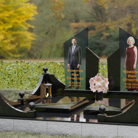 Этот мемориальный ансамбль представляет собой совершенное воплощение парного захоронения, где архитектурная мысль встречается с глубоким символизмом. Модель Артикул 249 — это не просто памятный знак, а настоящая архитектурная композиция, выполненная в лучших традициях современного европейского дизайна. В центре концепции лежат два величественных вертикальных обелиска, чьи вершины устремлены ввысь под острым углом, символизируя духовное вознесение и вечную память, не знающую преград. Гранитный монумент спроектирован как зеркальное отражение двух судеб, объединенных общим пространством, где симметрия подчеркивает гармонию и неразрывную связь душ.