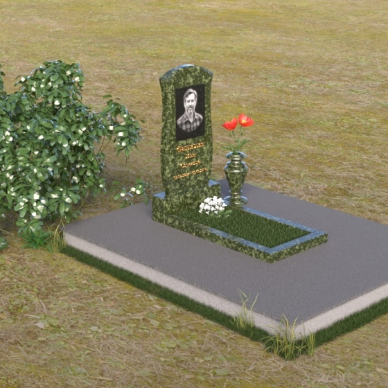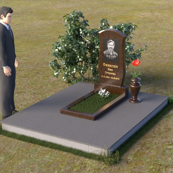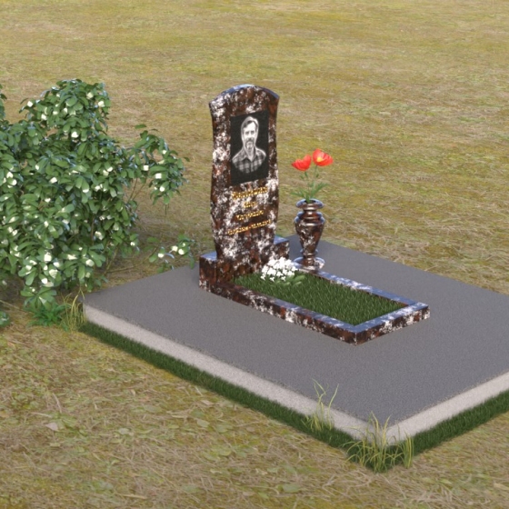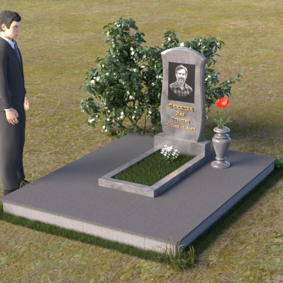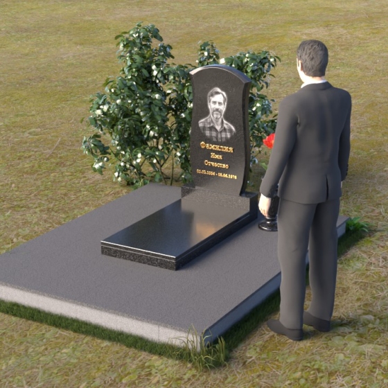 Данная модель предоставляет широкие возможности для индивидуального оформления. Портрет усопшего, выполненный методом гравировки, идеально вписывается в общую композицию, занимая центральное место на стеле. Золотистые буквы надписи, контрастируя с темным фоном полированного гранита, выглядят торжественно и выразительно. Мы рекомендуем выбирать фотографии высокого разрешения для достижения максимальной детализации и реалистичности портрета. Также возможно добавление дополнительных декоративных элементов, таких как эпитафии, религиозные символы или памятные даты. Небольшая подставка, выполненная в том же стиле, что и стела, гармонично дополняет композицию и может служить местом для возложения цветов. Элегантная ваза из черного гранита, расположенная рядом с надгробием, добавляет завершенность образу и позволяет сохранить свежесть цветов на длительное время.