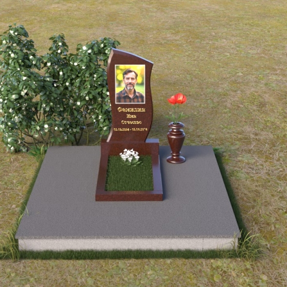 Стела ПВ 024 предоставляет широкие возможности для персонализации. Портрет усопшего, выполненный с высокой точностью, может быть размещен в верхней части памятника, органично вписавшись в общую композицию. Изящные шрифты, используемые для нанесения имени и дат жизни, добавляют памятнику элегантность и завершенность. Помимо портрета, на стеле можно разместить памятные надписи, эпитафии или символические изображения, отражающие увлечения и значимые моменты жизни ушедшего. Форма стелы позволяет гармонично расположить портрет как в вертикальном, так и в горизонтальном формате, в зависимости от предпочтений заказчика и особенностей фотографии. Плавные линии контура создают естественную рамку для изображения, подчеркивая его важность и значимость.